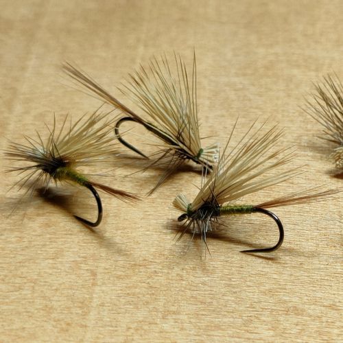 ・水面に浮かべて流すドライフライです。ハックルの下部はカットしてあります。