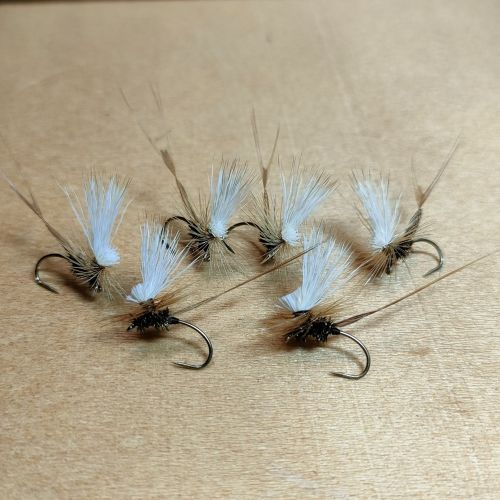 ・フロータントはウイングポストとハックル部分にのみ。それより下の部分は水面下に沈めて使うパターンです。