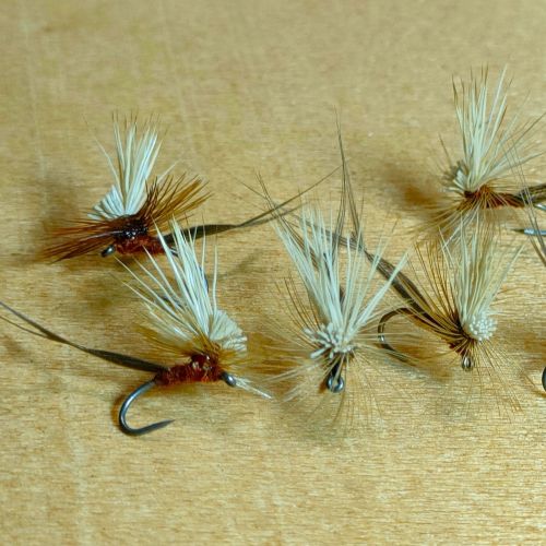 ・フロータントはウイングポストとハックル部分にのみ。それより下の部分は水面下に沈めて使うパターンです。